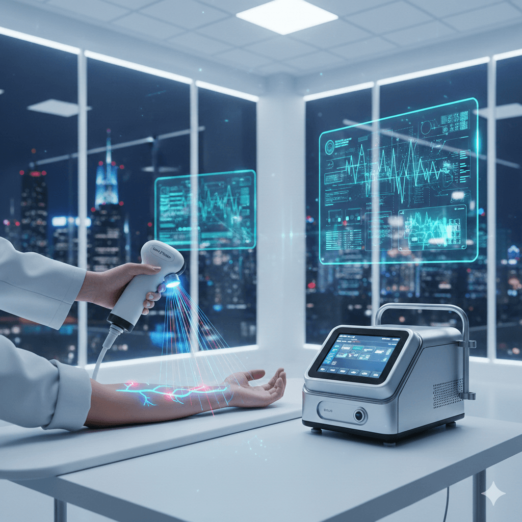 Somos pioneros en Colombia en la importación de equipos electromecánicos para la detección de venas subcutáneas (Vein Finder), facilitando procedimientos clínicos más seguros y precisos.